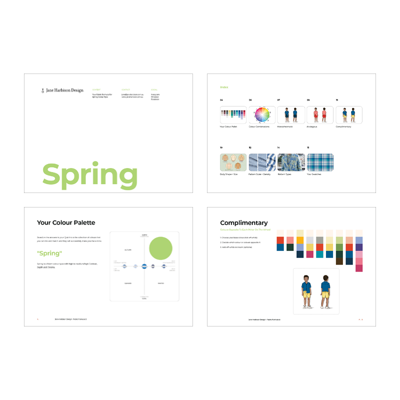 In addition to your colour type I make recommendations on wearable combinations that are complimentary, analogous and monochrome. And if you want, you can purchase a sample of fabrics that suit.