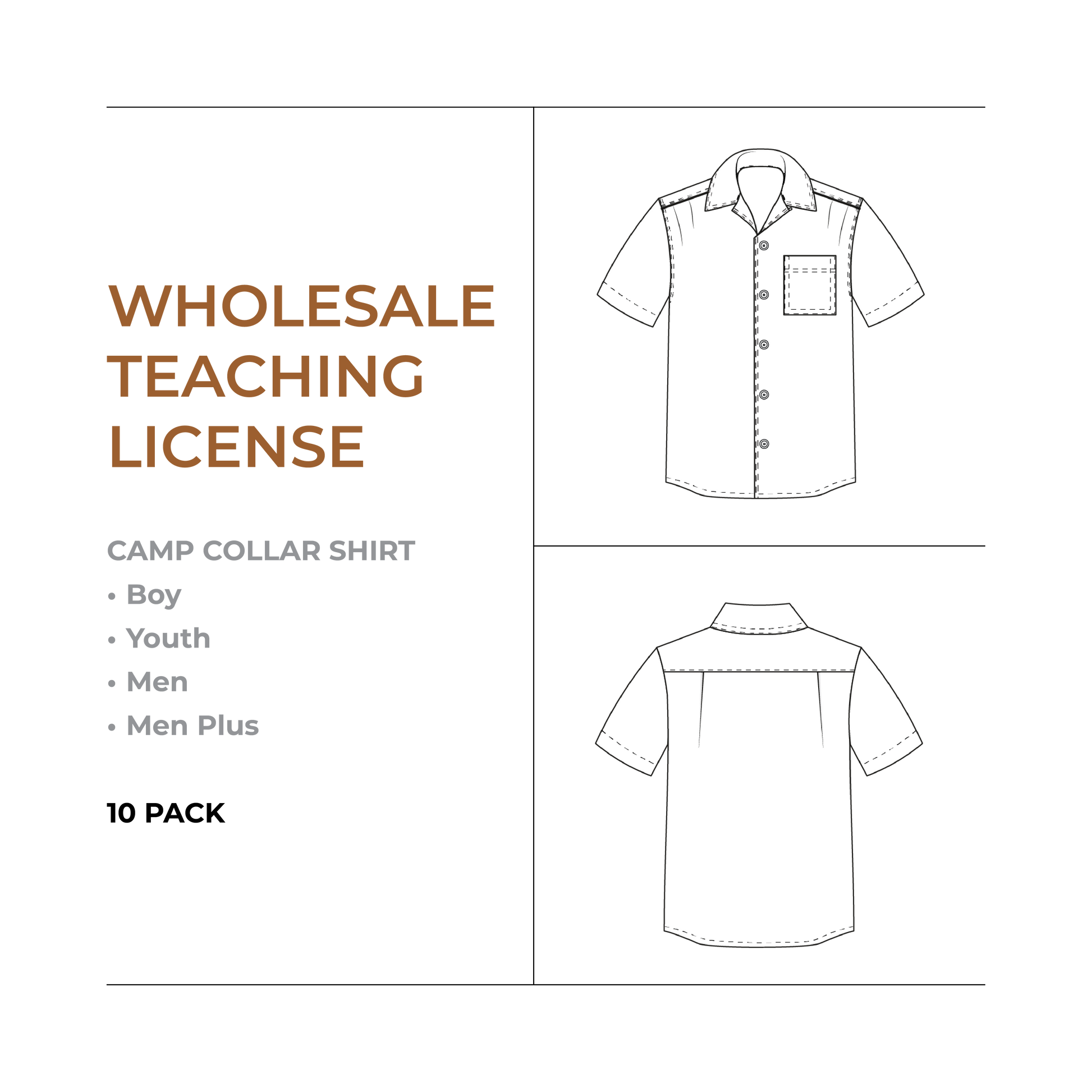 Use this Wholesale Teaching Licence if you are a sewing school or instructor running workshops and private lessons. It gives you access for 10 or 20 student packs for the Camp Collar Shirt sewing pattern for any sizes purchased.