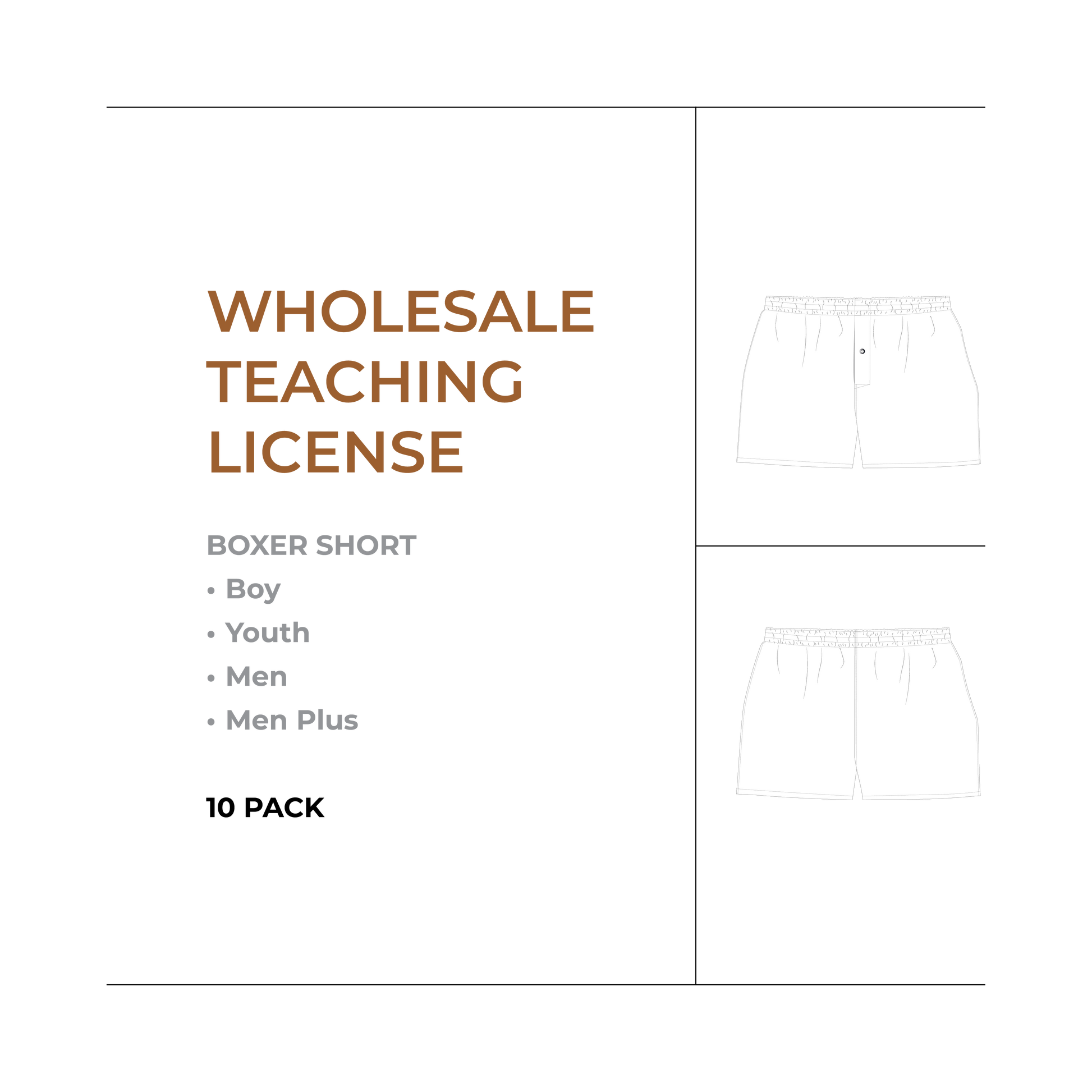Use this Wholesale Teaching Licence if you are a sewing school or instructor running workshops and private lessons. It gives you access for 10 or 20 student packs for the Boxer Short sewing pattern for any sizes purchased.